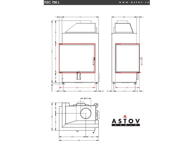 Каминная топка Astov П2С 700 L