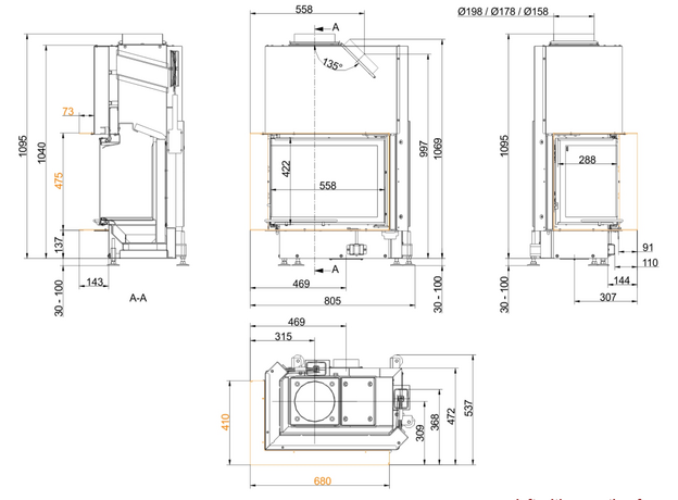 Каминная топка Brunner Eck Lift 42/57/30 Left