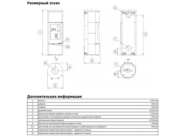 Диаметр дымохода: