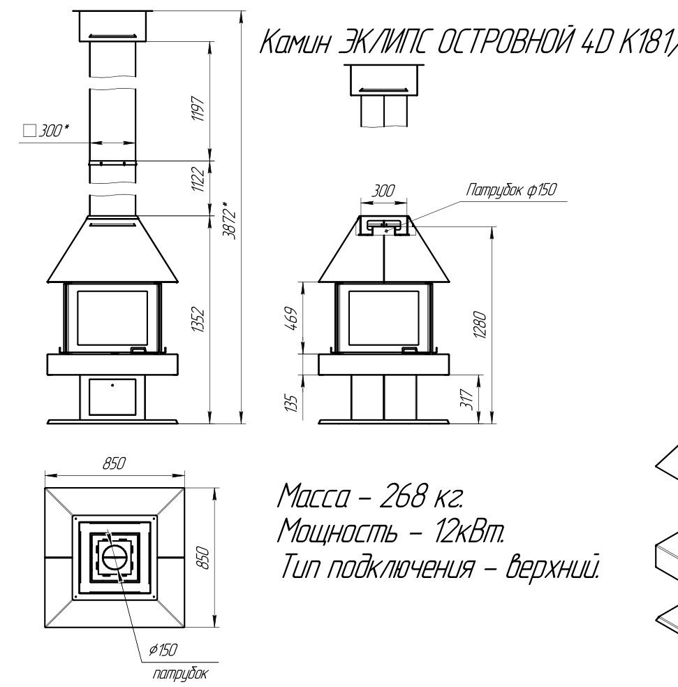 Печь-камин EcoKamin Эклипс Островной 4D Графит