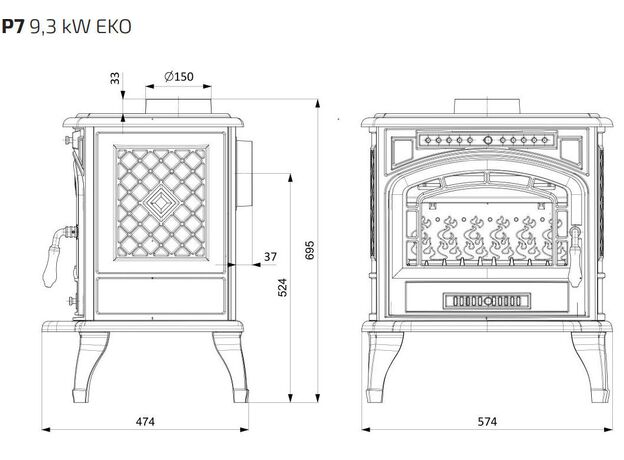 Печь-камин KawMet P7 9,3 kW Eko