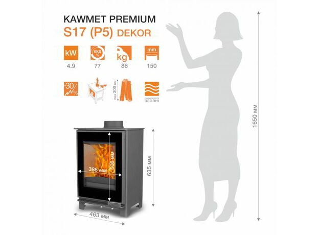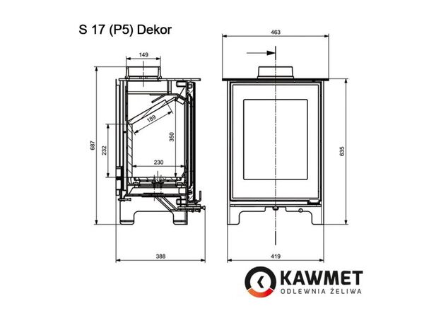 Печь-камин KawMet Premium S17 Dekor 4,9 kW