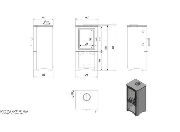 Печь-камин Kratki Koza K5 с дровником