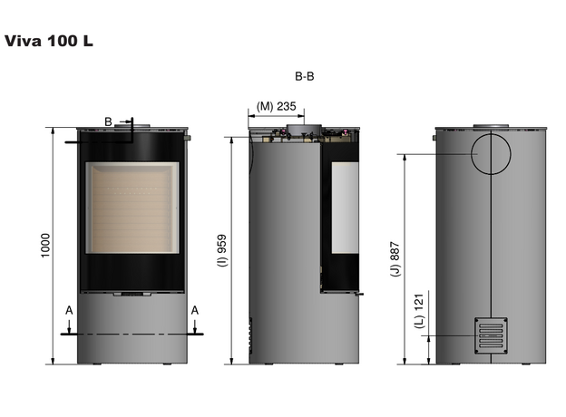 Печь-камин Rais Viva 100 L Glass Nickel