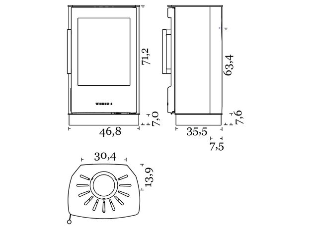 Габариты. Печь не занимает много места, не требует большого пространства для установки. При этом Wiking Miro имеет огромное остекление. Для установки печи не нужен фундамент. Её можно устанавливать на любой тип полового покрытия. В том числе на деревянные полы или на ламинат. Нижняя часть Викинг Миро не нагревается СОВСЕМ. Для защиты от возможного попадания случайных угольков на пол мы укладываем перед печью небольшой стальной или стеклянный притопочный лист.