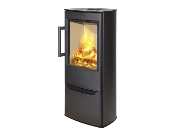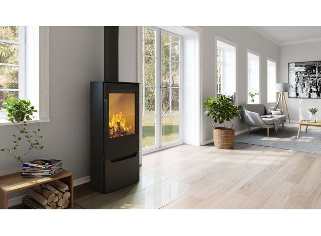 Качественная скандинавская печь с большим стеклом и умеренной мощностью.