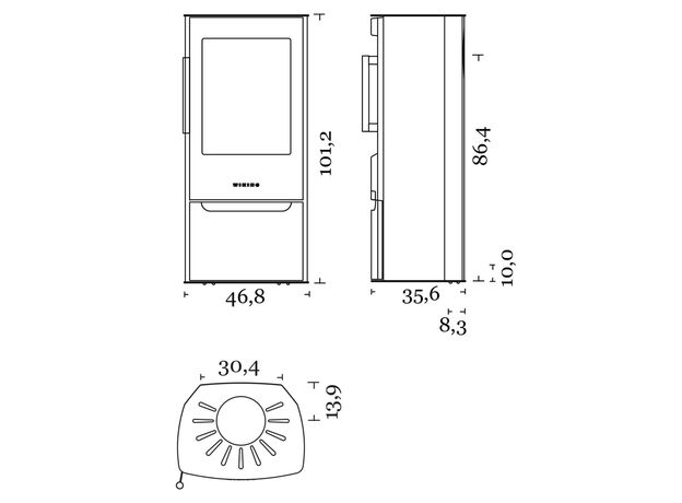 Габариты. Печь не занимает много места, не требует большого пространства для установки. При этом Wiking Miro имеет огромное остекление. Для установки печи не нужен фундамент. Её можно устанавливать на любой тип полового покрытия. В том числе на деревянные полы или на ламинат. Нижняя часть Викинг Миро не нагревается СОВСЕМ. Для защиты от возможного попадания случайных угольков на пол мы укладываем перед печью небольшой стальной или стеклянный притопочный лист.